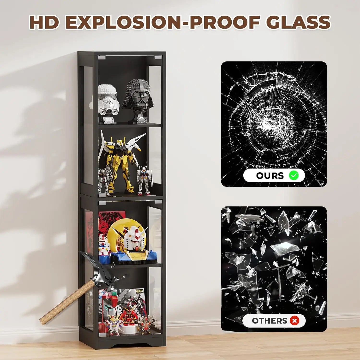 ✅ 4 spacious glass shelves for collectibles