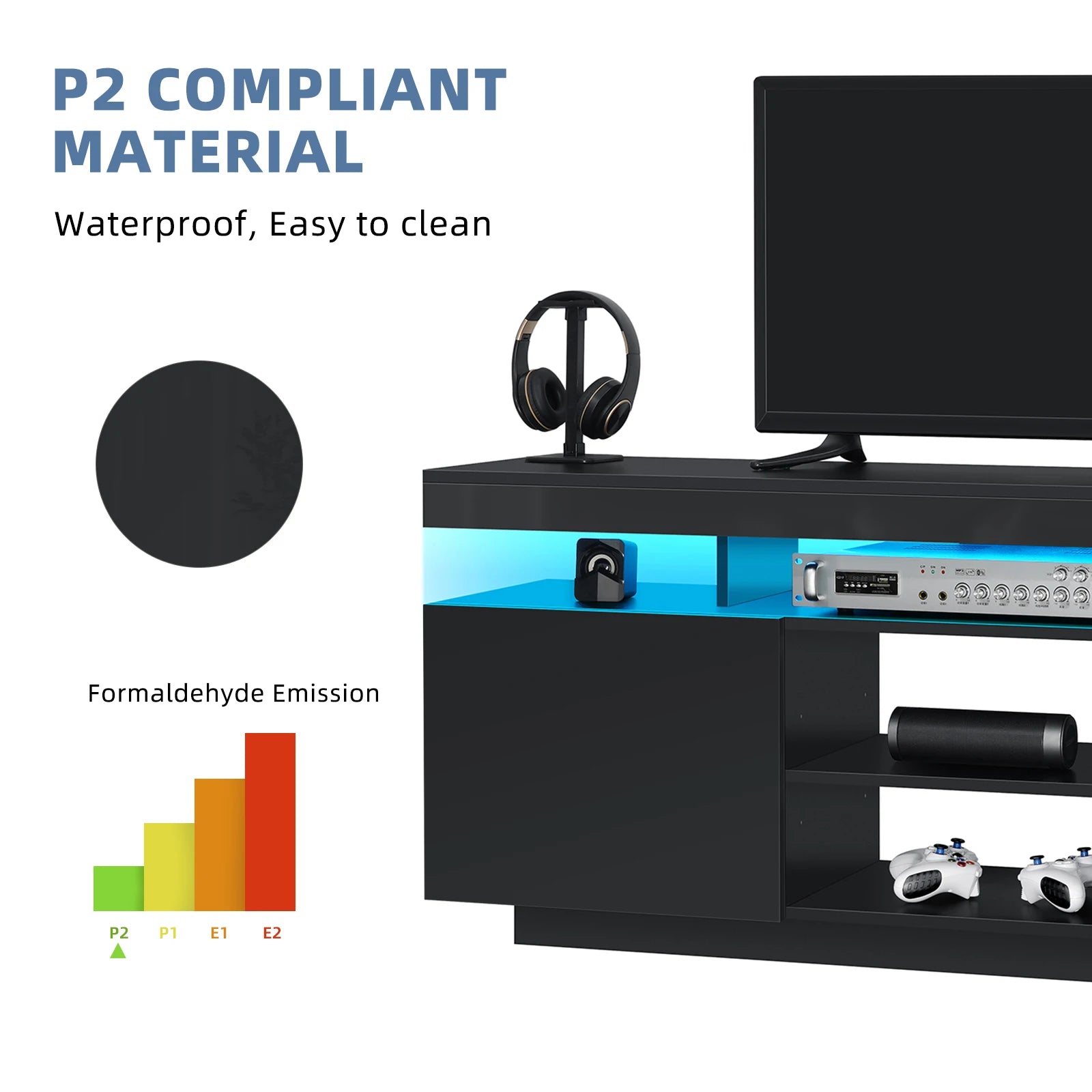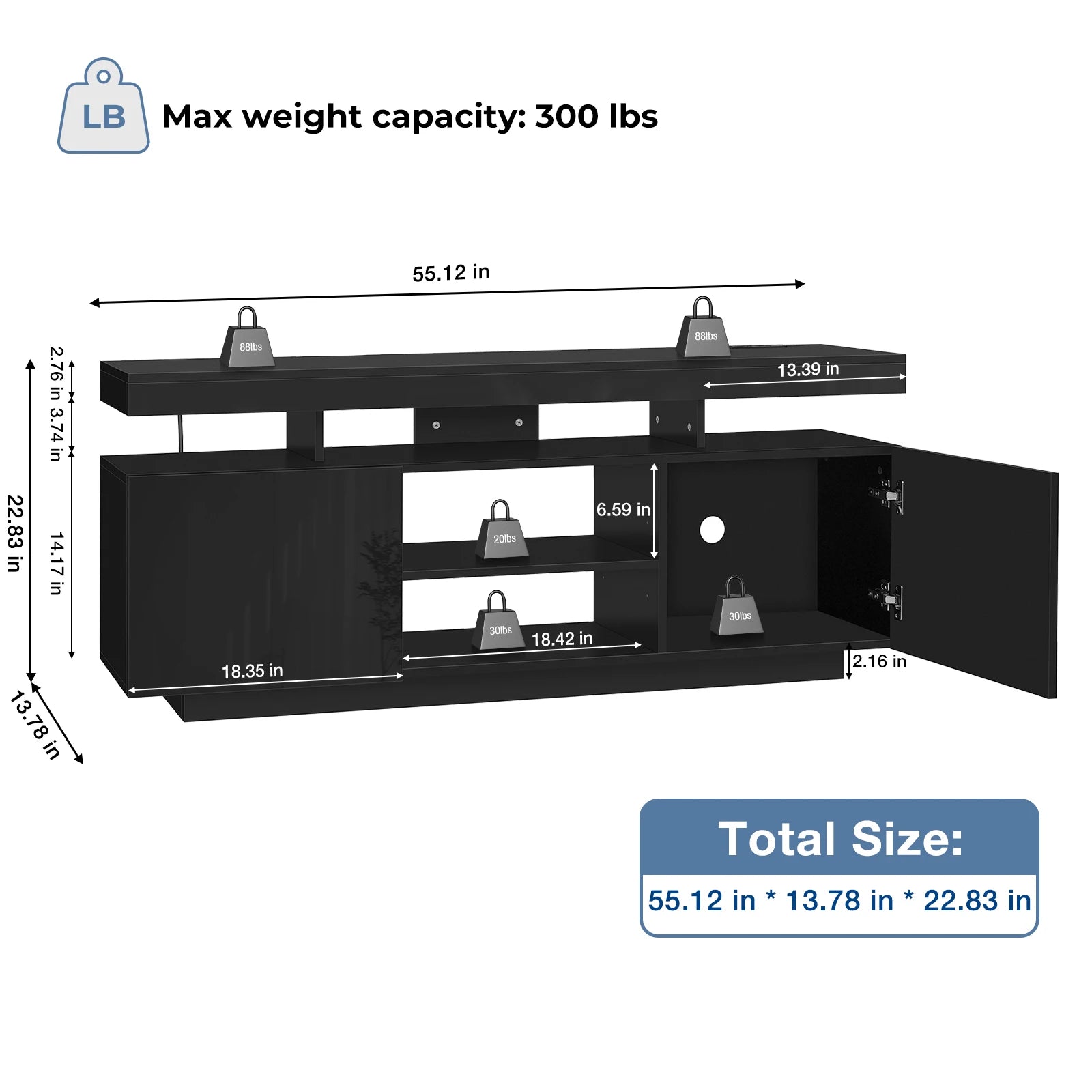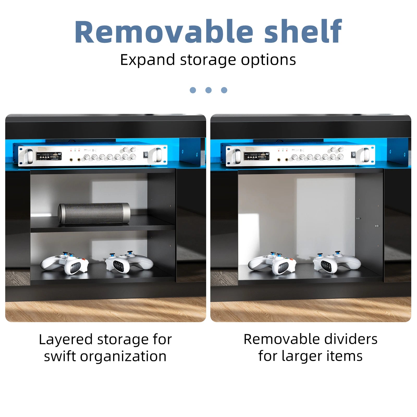 The table offers ample storage options with 2 open storage boxes for easy access to media or decor items, and 2 spacious drawers to keep your living space organized and clutter-free. The integrated LED lighting adds a modern touch, creating an ambient glow that enhances your entertainment area.